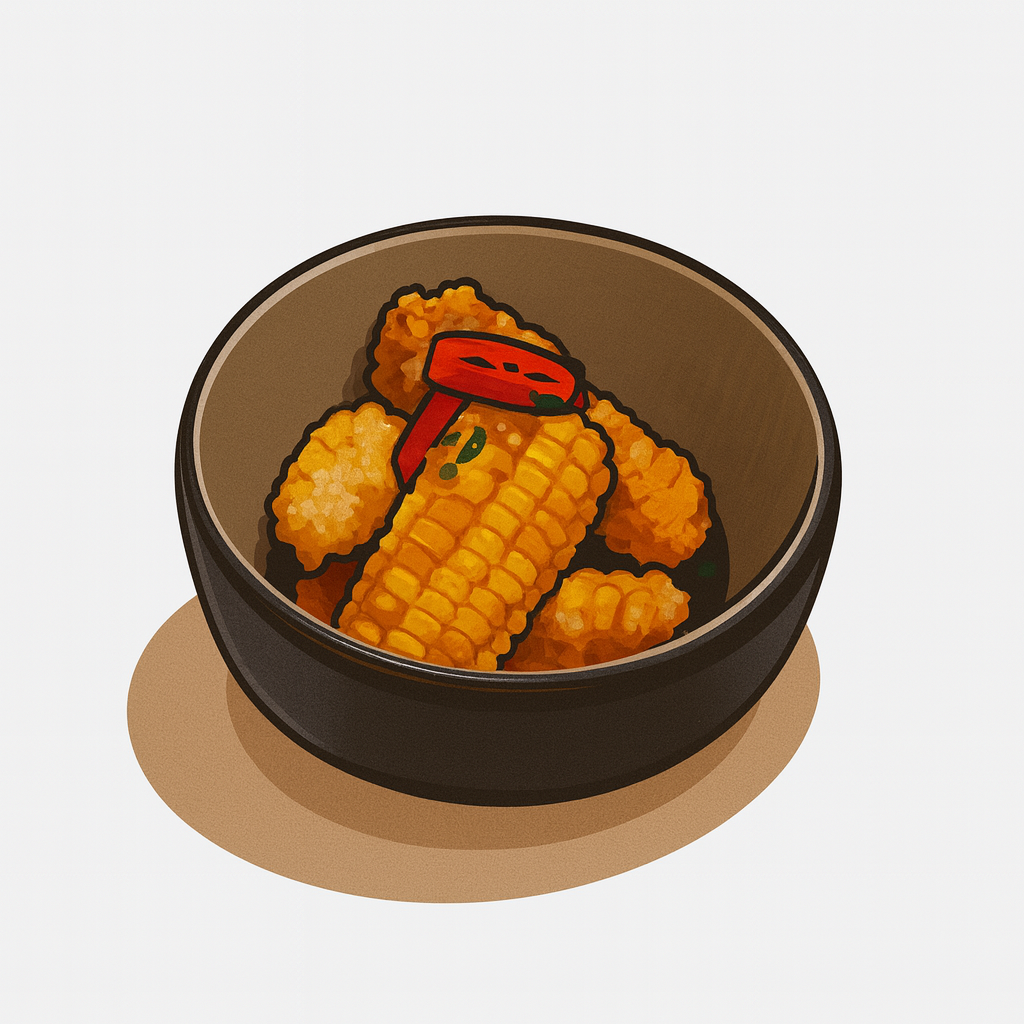 Sweet corn ribs coated in our signature crispy batter and flash-fried to a golden crunch. Tossed with salt, crushed pepper, and fresh chilli